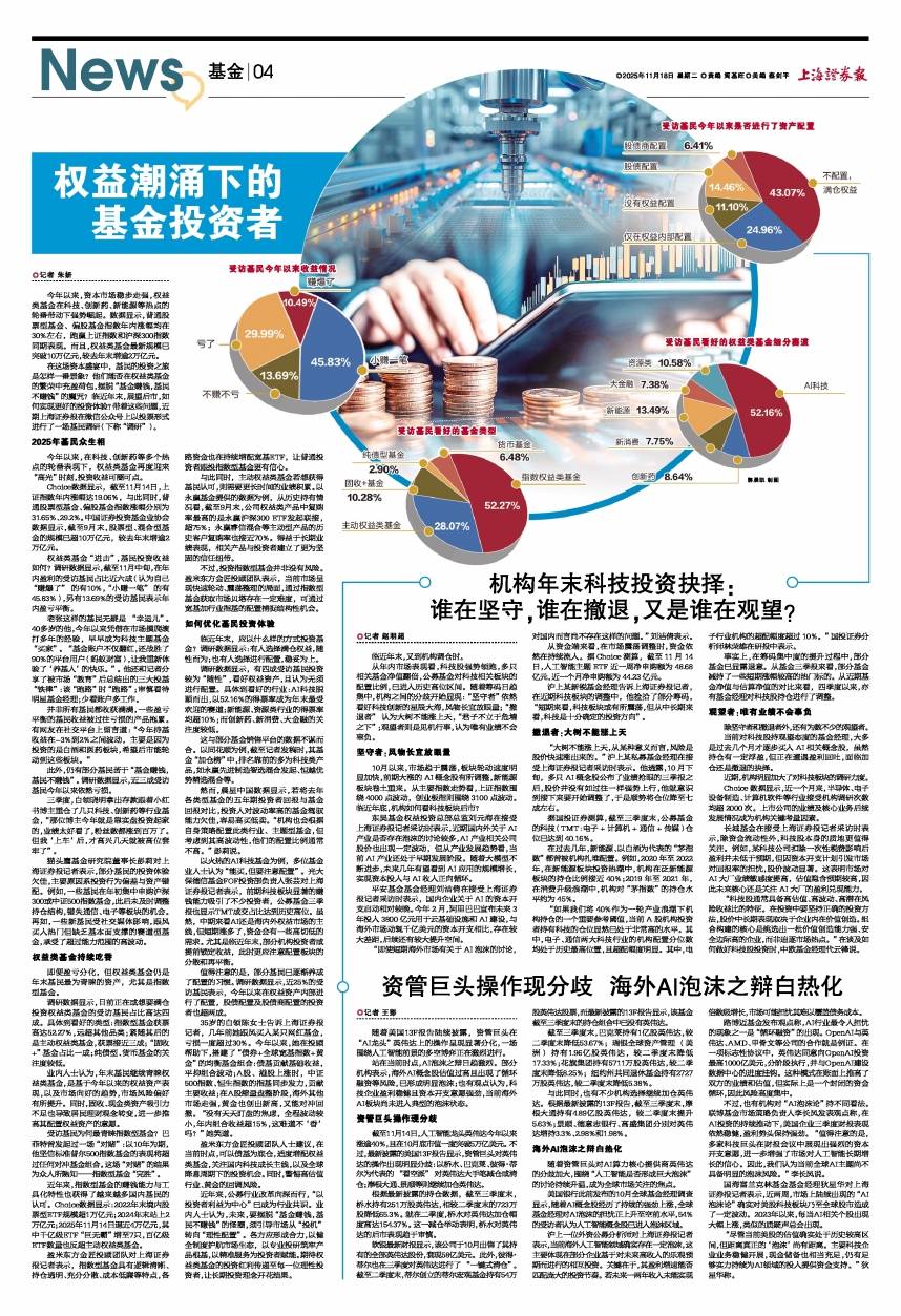 2025-11-18爱体育,爱体育官方网站,爱体育APP下载今年以来,资本市场稳步走强,权益类基金在科技、创新药、新能源等热点的轮番带动下强势崛起。数据显示,普通股票型基金、偏股基金指数年内涨幅均在30%左右,跑赢上证指数和沪深300指数同期表现。而且,权益类基金最新规模已突破10万亿元,较去年末增逾2万亿元。在这场资本盛宴中,基民的投资之旅是怎样一番景象?他们能否在权益类基金的繁荣中充盈荷包,摆脱“基金赚钱,基民不赚钱”的魔咒?临近年末,展望后市,如何实现更好的投资体验?带着这些问题,近期上海证券报在微信公众号上以投票形式进行了一场基民调研。