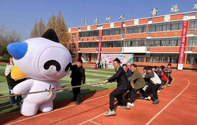 捐赠仪式结束后,两所学校分别开展丰富多彩的互动活动。拔河比赛紧张激烈,嘉宾、老师与学生代表齐心协力,展现出团结拼搏的精神;“毛毛虫”游戏中,孩子们笑声不断,尽情享受运动的乐趣。河南省体校的专业教师还为学生带来趣味体育课,教授排球和乒乓球基础技能,开设田径与足球特色课堂。通过专业指导和趣味训练,激发学生对体育运动的兴趣,提升他们的运动技能。孩子们在专业指导下认真练习,操场上洋溢着运动的热情。鹤壁分中心工作人员、学校师生共同参与,在协作中增进情感,在竞技中收获快乐。